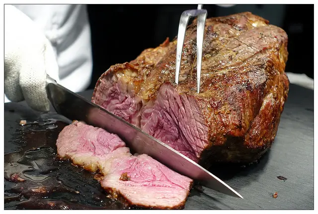 外表考至焦香酥脆的爐烤肋眼牛排還沒切開時就已經很讓人流口水了