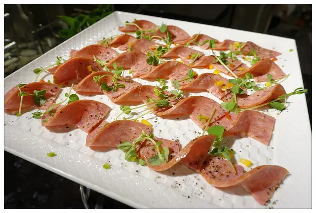新鮮的牛肉片在熱湯澆淋之下大約會在七分熟的熟度