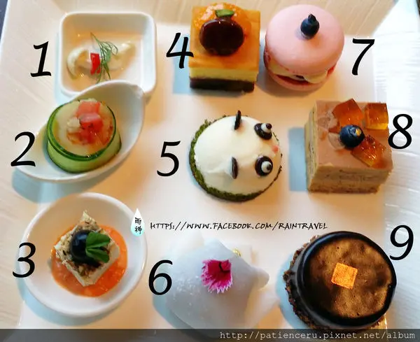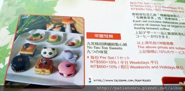 【九宮格下午茶】只有在雨庭花園餐廳才有提供。如果還不是很清楚,可以上網爬一下文,或是像我一樣直接跟服務人員說“我想吃傳說中超好吃的九宮格下午茶!!”應該幾乎都知道囉~~~