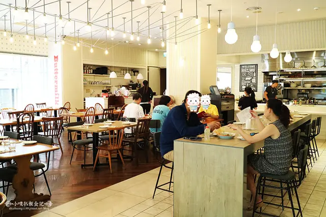 這裡跟其他美式餐廳有點不同,光線非常充足,上面的鎢絲燈溫暖的照耀著.又帶著一點工業風,感覺讓人有種放鬆.悠閒的感受