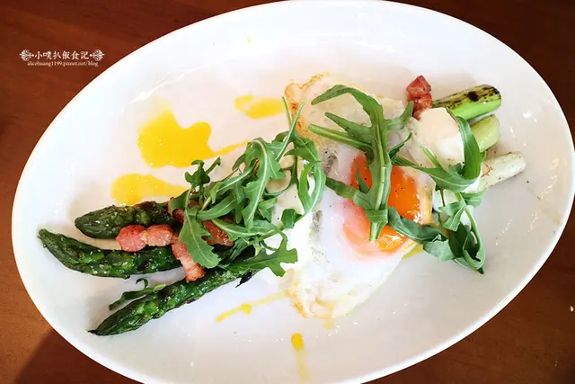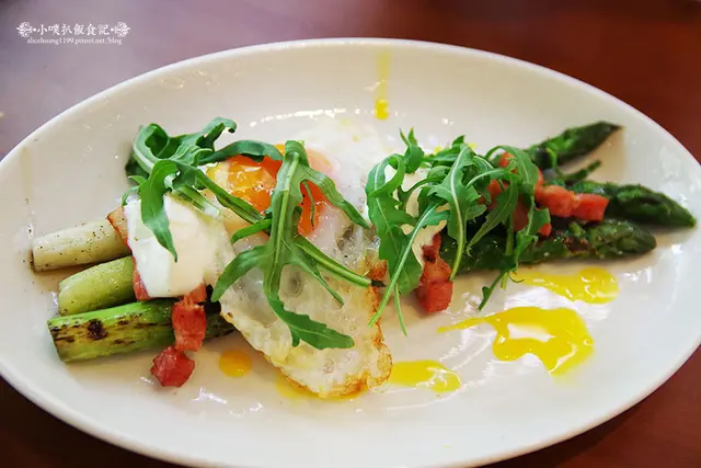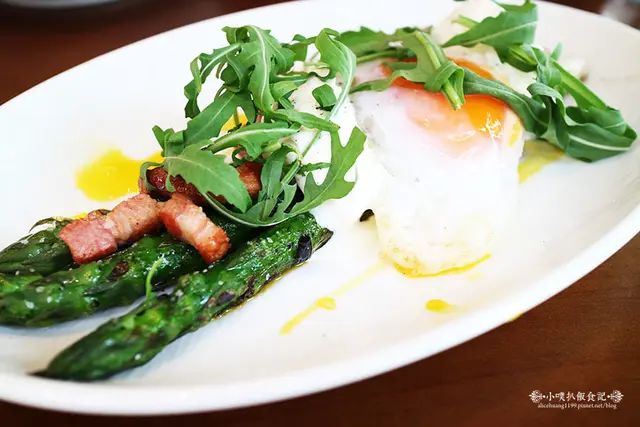 蘆筍清新,並透出香氣十足的碳烤香氣,培根肉塊鹹香好吃,搭配一點新鮮蛋液,美味簡直不同凡響!!!!