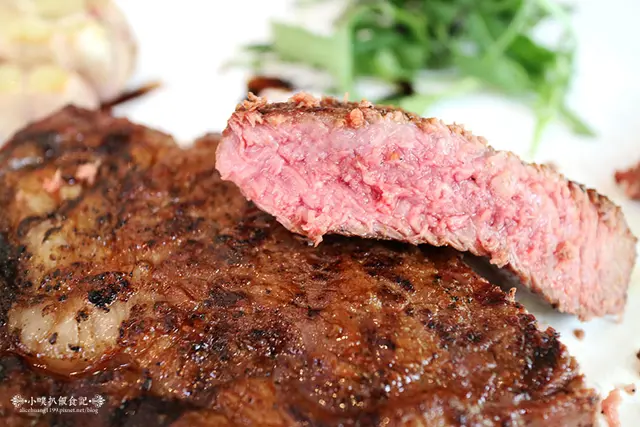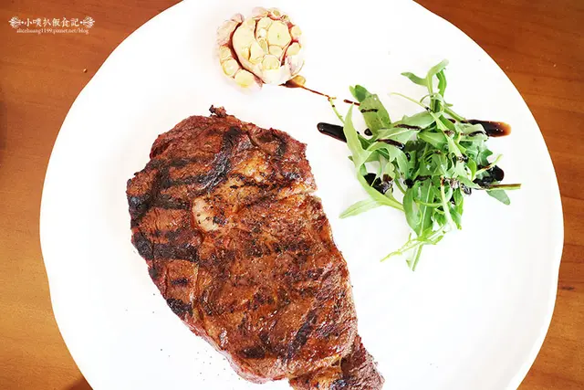 牛排全程以原木碳烤烹飪,不但碳香味十足,更有一點淡淡的自然碳木甜香氣息,店家建議以5分熟,最為優質