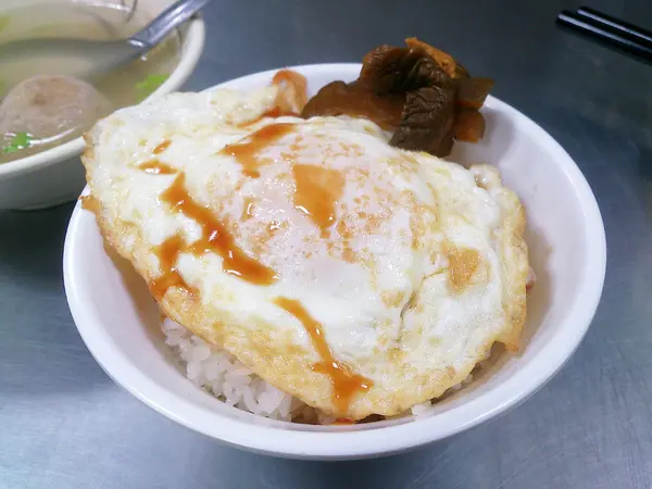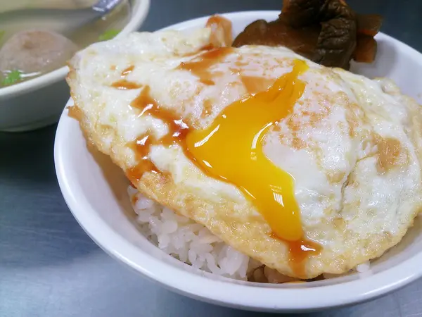 蛋上面淋著些醬油