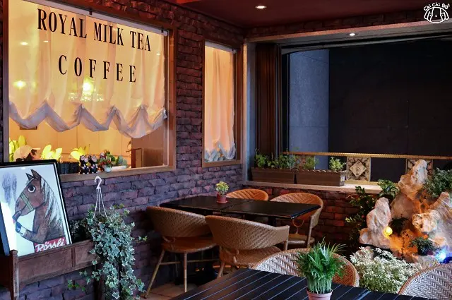 以咖啡器具和西洋畫裝飾,牆面則是西式紅磚牆面,充滿了復古懷舊風味!
