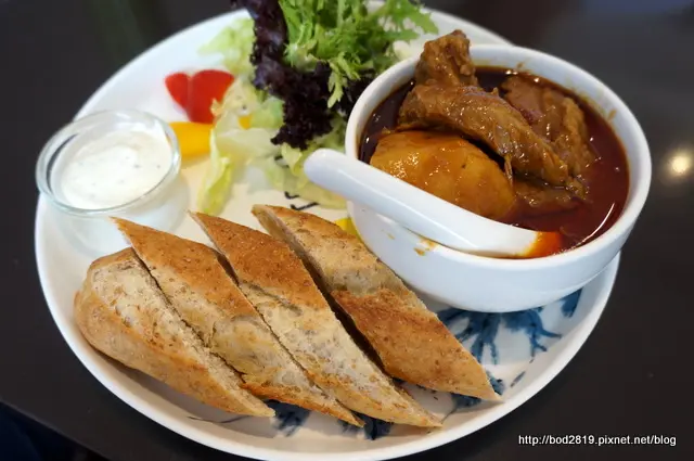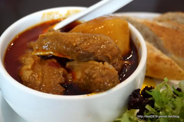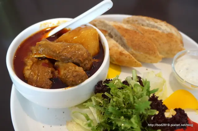 有麵包、有牛腩跟沙拉,麵包應該是搭配牛腩的,