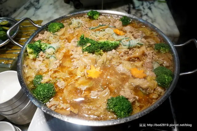 壽喜燒,裡面有很多的肉(記得是豬肉),