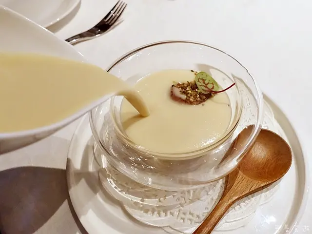 直接在桌邊倒入玻璃碗內,質地細滑濃稠