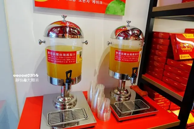 來到店裡除了參觀外還有免費甜蜜蜜的鳳梨汁可以喝唷,現在天氣好熱呀,走一走進來吹吹冷氣喝一杯冰涼的鳳梨汁好棒喔!!