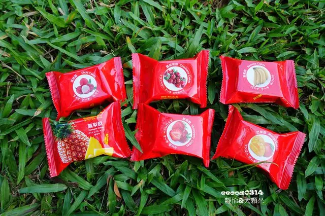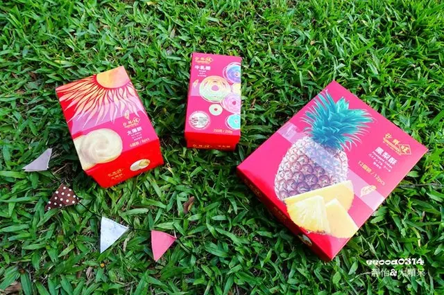 每一款鳳梨酥及水果酥包裝上都有水果圖案,這樣就可以清楚知道口味,單包裝設計攜帶方便,有荔枝、蔓越莓、香蕉、芒果、草莓及鳳梨等
