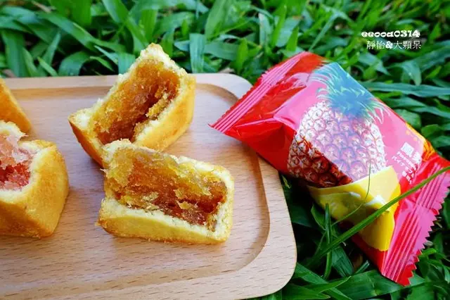 一打開包裝就可以感受到鳳梨酥的酥脆,金黃色澤的餅皮好吸睛,還有陣陣的奶香飄散出來..鳳梨酥採用頂級奶油搭配鳳梨、融合些許冬瓜醬還有土雞蛋等製作而成