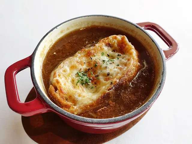 飄著一片焗烤麵包,整碗滿滿的洋蔥絲