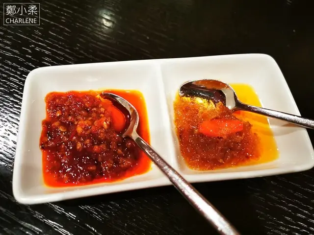 桌上已備有辣椒醬XO醬辣椒醬香辣而微鹹,XO醬香鹹,很夠味。