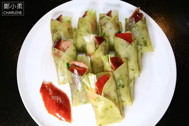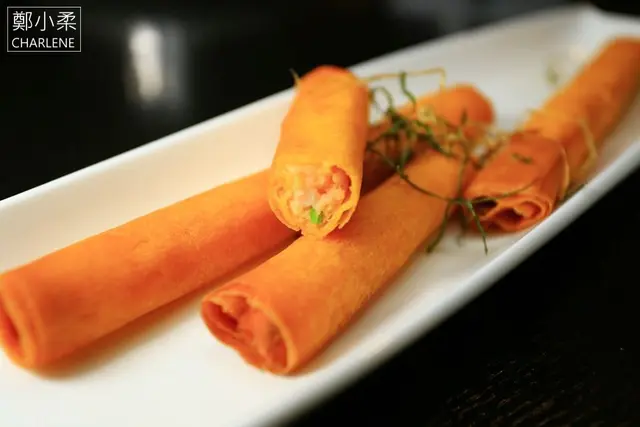 春捲皮脆而香酥,餡料是鮮蝦跟芹菜製作而成,