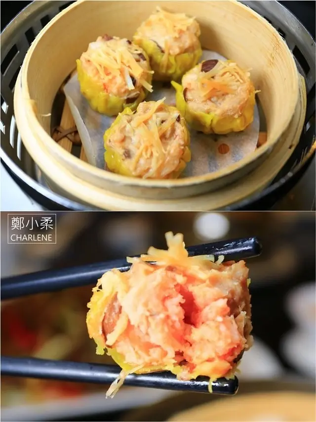 以干貝、香菇、鮮蝦等食材做成燒賣,