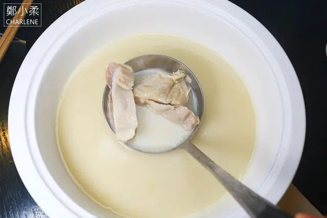 一人一碗的熱湯,色澤乳白,湯頭帶有胡椒香氣,