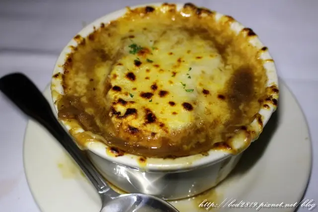 洋蔥濃湯看起來熱量很高,味道濃郁鹹香,