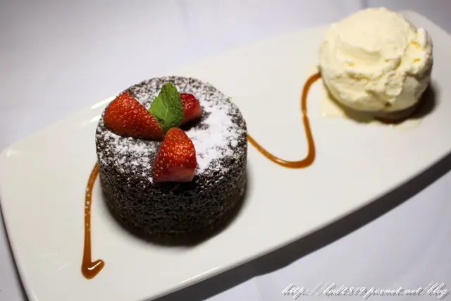 熔岩蛋糕烤得酥脆,巧克力香氣十足,