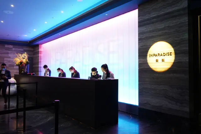46樓電梯門一打開,Wo...夜店風十足的大廳櫃台,真是漂釀!!