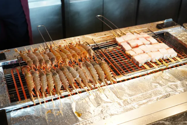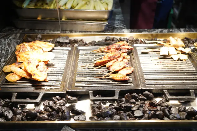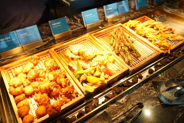 再來,瞧瞧燒烤、日式炸物、中式熟食區,整齊排列的食材怎麼看怎麼漂亮