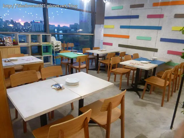 長型的空間中左右各為用餐區,如果坐靠近窗戶的位置還可以欣賞台北都市的風景~