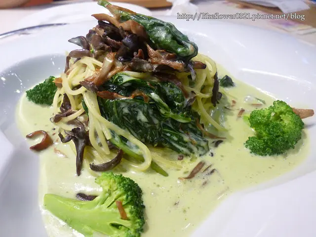 可能是豆乳的作用讓醬汁吃起來很溫和,再搭配沒有太多調味的羅勒及香菇