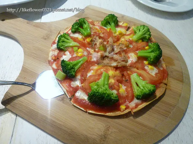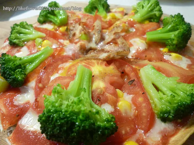 我家挺常吃花椰菜的,不過應該沒有人會想說把花椰菜放在薄餅上吧~哈哈