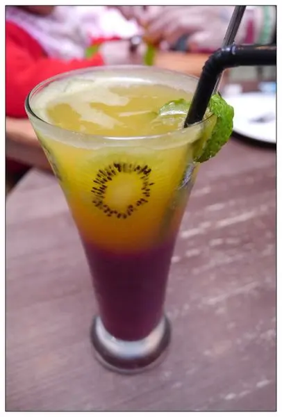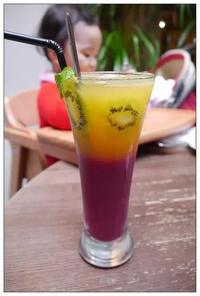 這杯果汁顏色漸層的好美~小菲是去櫃檯點餐時剛好看到服務生在做~
