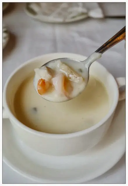 這道湯品小菲還蠻愛的~~喝起來不會過稠~而且有著很鮮的奶油香氣~滑順可口配料的部分也是誠意十足~有蝦仁、蟹肉、還有魚肉呢!