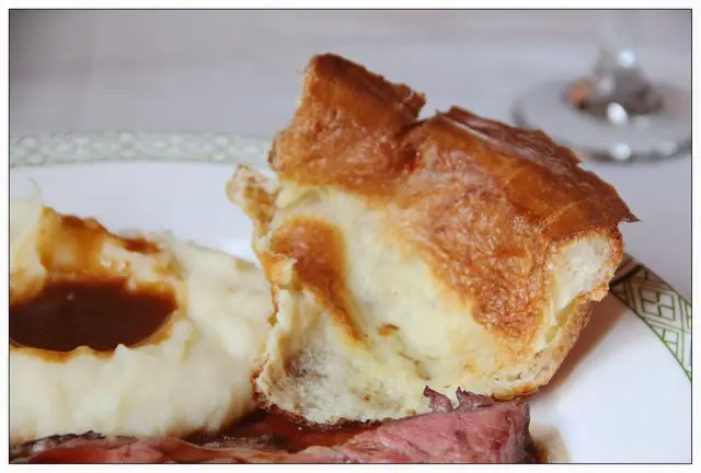 現烤出爐的約克夏布丁服務生會切成小塊方便取用~單吃的話會有點乾