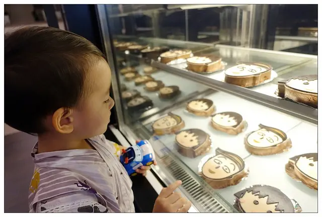 櫃檯旁的甜點櫃裡目前有推出小丸子和花輪造型的蛋糕