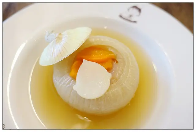 底下是一整顆蒸熟的洋蔥~要注意上方的蓋子是不能吃的喔!XD