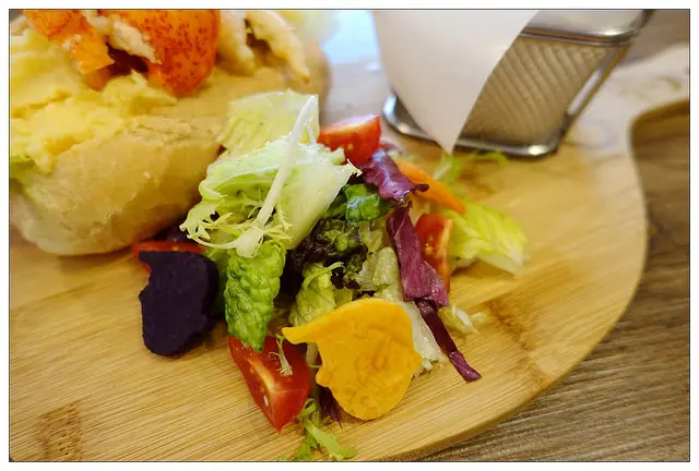 一旁的生菜裡也有亮點~有很多花輪陪你一起用餐喔!哈