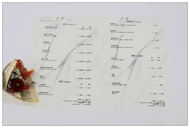 飲品有茶類、牛奶類及咖啡類、果汁類~價位都在NT200上下