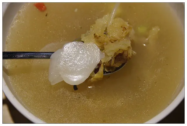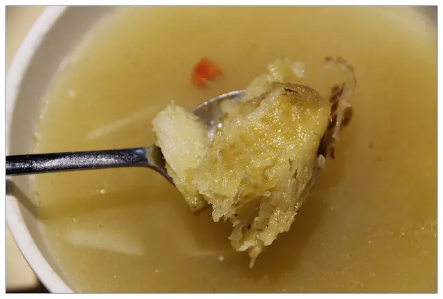 這碗黃太湯用的是低脂肪高蛋白的明太魚乾(黃太)和豆芽一起熬煮