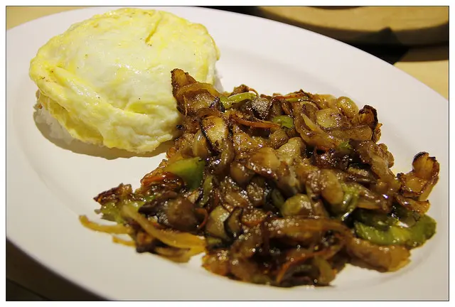 白飯上還蓋著一個可愛的煎蛋~這對飯控來說是很不錯的一道料裡啊!!