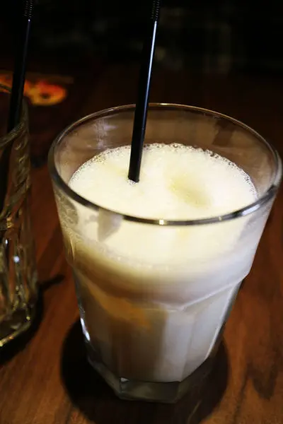 水蜜桃拉昔:我覺得很像是水果優格奶昔,水蜜桃香甜好喝,奶昔略有濃稠的滋味,其實頗為解渴,冰冰涼涼的,很有滋味