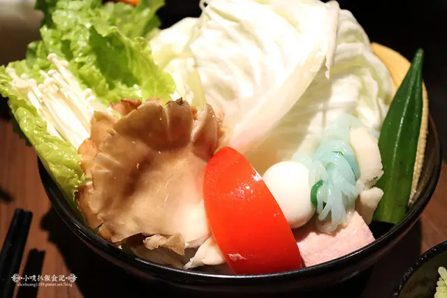 附菜盤:高麗菜.金針菇.番茄片.蒟蒻.鵪鶉蛋.玉米筍.秋葵