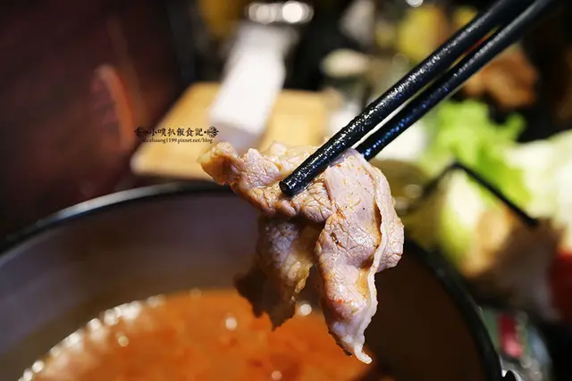 稍微涮個幾秒,保持肉片的軟嫩及鮮度,肉質富嚼勁,帶點油花的滋味,感覺越嚼越甜