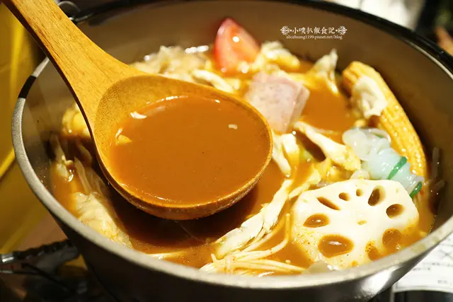 將"藥膳調理"的概念與東南亞及印度的咖哩文化做結合,使用辛香料.豬骨或雞骨以大量的蔬菜熬製而成的湯底