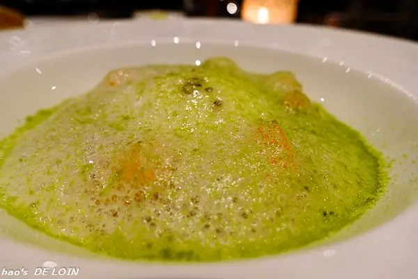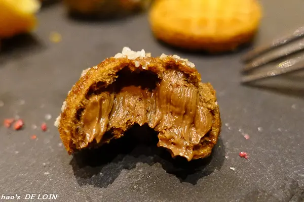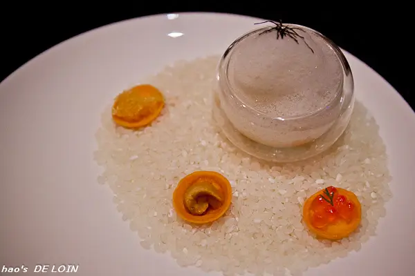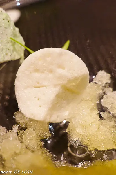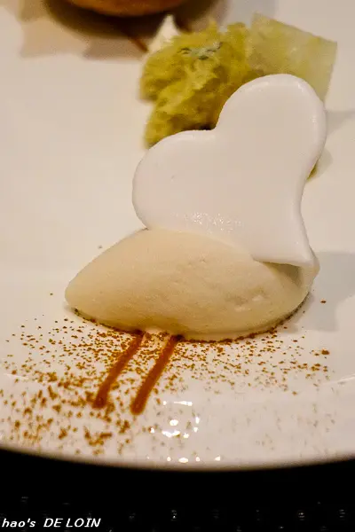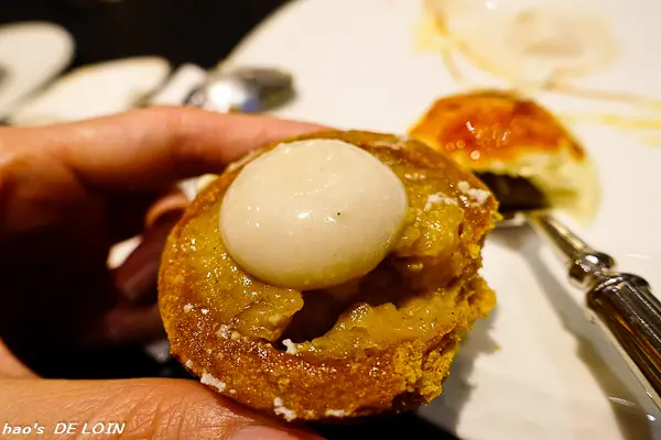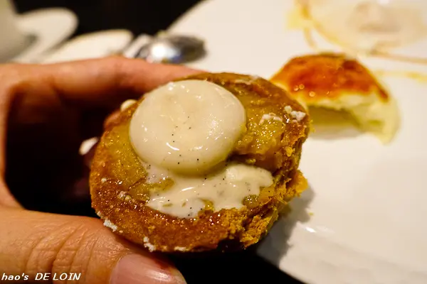 皮薄而包裹著香草奶醬(?),以分子料理的手法處理,讓滋味更添甜美香濃,
