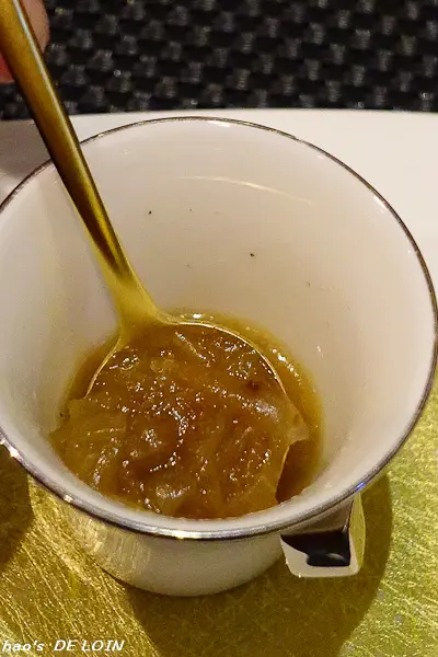 小巧的瓷杯,徐徐注入半滿的洋蔥湯,喝來清爽不膩,