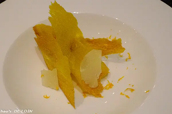 一旁如紙般的深褐薄片是以洋蔥精心烤製而成,