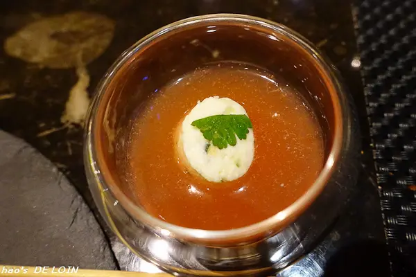 黑金就是法國食材中最著名的黑松露,德朗的澄清雞湯香醇清爽,
