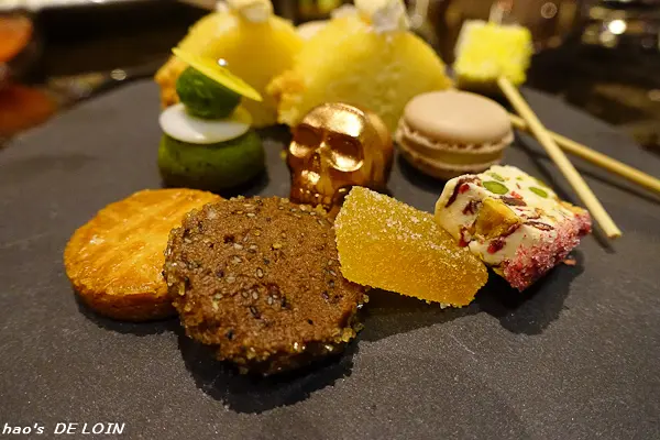 其中最吸引我們注意力的,是骷髏頭造型的金色小點心。