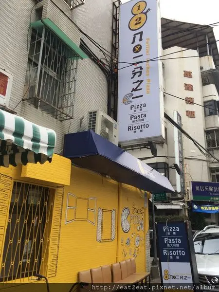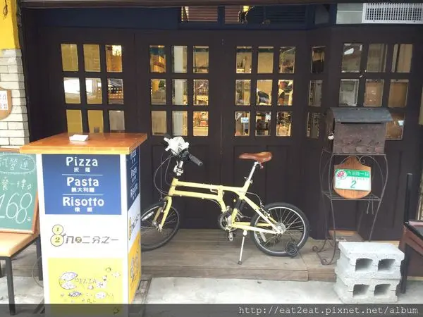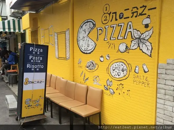 昨天才開幕的八又二分之一,其實跟炭為觀止有點像,只是換了顏色,連門牌的pizza托盤都一模一樣