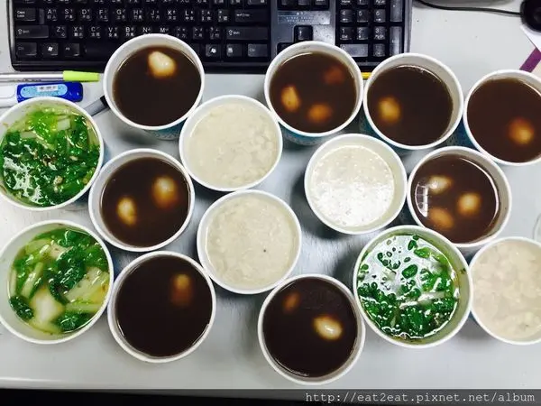 鹹湯圓、紅豆湯圓、花生湯圓~一字排開超壯觀,敝單位有這麼多人嗎哈哈
