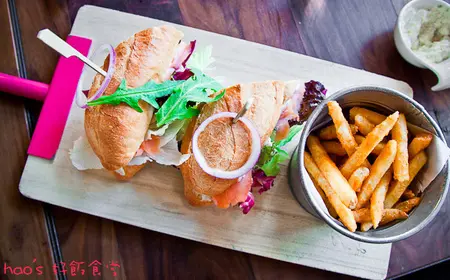 挪威煙燻鮭魚西班牙三明治,280元。