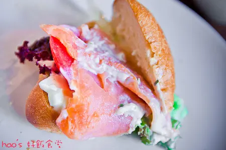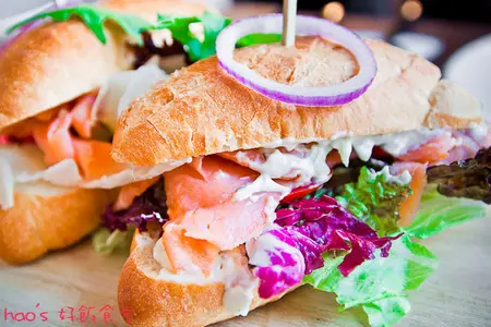 夾著清脆的生菜、酸甜的番茄、美味的鮭魚,