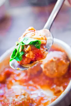 香濃的起司搭上酸甜的番茄醬汁和肉汁四溢的牛肉丸子,