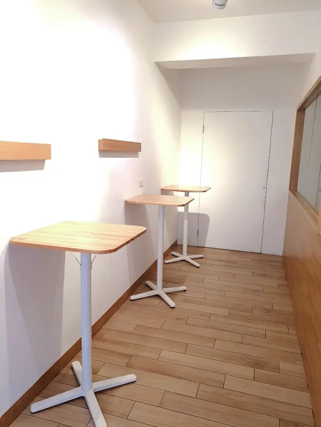 小小一間店面設有立食區,右手邊是車輪餅製作區,熟練的毫不客氣塞入滿滿內餡,不知道是不是幸運的選對時間點來,網路上寫著要排隊,